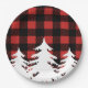 Rustic Buffalo Check Plaid & White Forest Trees Paper Plate