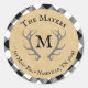 Rustic Buffalo Plaid Antler Monogram Address Classic Round Sticker