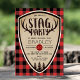 Gather the herd and celebrate the groom-to-be with this ruggedly handsome Buffalo Plaid Stag Party Invitation. Perfectly blending a classic "lumberjack" aesthetic with modern typography, this design sets the tone for a night of brotherhood, brews, and celebration. The design features a timeless red and black buffalo check plaid border that screams "great outdoors." and the central text is housed in a bold, shield-style crest set against a vintage kraft-paper texture. The hand-drawn style stag antlers frames the "Stag Party" headline for a masculine, rustic touch and the detailed pine tree silhouettes ground the design, making it ideal for camping trips, cabin weekends, or backyard bonfires.