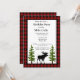 This rustic red and black buffalo plaid designed invitation is perfect for him. The design also features fir trees and a silhouette of a moose.