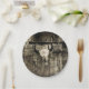 Rustic buffalo skull with horns on a barn paper plate