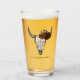 This Western custom drinking glass features hand-drawn farmhouse style bull skull adorned with roses illustration in black ink. Personalise with your family name.