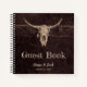 Rustic bull cow skull western country cowboy wedding dinner reception spiral notebook keepsake guest book. Customise your typography. Brown texture farmhouse style for bride and groom. Old wild west vintage antique inspired. Cool, trendy, modern farm animal design. Image copyright Marg Seregelyi Photography.