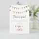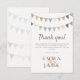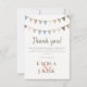 Express your gratitude in style with this contemporary wedding thank you note, featuring a whimsical pastel bunting banner card as the focal point. The soft dusty blue and peach palette, paired with a muted warm colour scheme, lends a minimal modern design aesthetic to the card. Vintage boho baby shower style meets rustic outdoor celebration card, creating a cute cheerful wedding stationery piece that is both joyful and heartfelt. A classic ampersand joins the couple’s names, matching your coordinating invitation suite and adding distinctive charm. This card is perfect for extending appreciation to your guests while maintaining a cohesive, joyful, and stylish wedding theme.