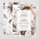 Plan your dream wedding with this wonderfully beautiful rustic boho watercolor floral wedding invitation design. It has a sumptuous neutral colour palette in beige, green, peach, and tinges of pink and terracotta blended with autumn hues of deep burgundy marsala. A beautiful rectangular frame with gold accent adds elegance to the design. The back of the invitation has a lovely matching floral pattern with floral elements scattered across the design. Personalise the text template with your wedding details.