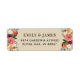 This rustic return address label features lush watercolor floral bouquets in burgundy, coral, and peach anchoring both corners of a warm beige background. Perfect for autumn weddings, fall bridal showers, and rustic harvest celebrations. The names and address fields are easy to personalise. A charming finishing touch for fall wedding invitations and thank you cards.