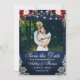 Rustic Blue Wood String Lights Watercolor Burgundy Marsala Floral, burgundy roses, pink roses and greenery Lace Wedding Save The Date Card