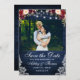 Rustic Burgundy Floral Blue Wood Lights Photo Save The Date