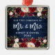 Rustic Blue Wood, Modern Brush Script, Watercolor Burgundy Floral, Our First Christmas as Mr. and Mrs. Heart Wedding Ornament