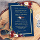 Rustic Burgundy Floral Gold Navy Blue Wedding Invitation