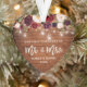 Rustic Wood, Modern Brush Script, Watercolor Burgundy Marsala Floral, Our First Christmas as Mr. and Mrs. Heart Wedding Ornament with Mason Jar String Lights