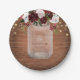 Rustic Burgundy Floral Mason Jar Wedding Paper Plate