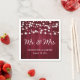 These wedding paper napkins featuring barn wood and string lights are ideal for a burgundy rustic wedding party. Easily personalise with your wedding details.