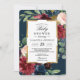 Rustic Burgundy Navy Blue & Red Floral Gold Frame Invitation
