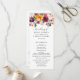 Vibrant fall florals in rich burgundy, pink, orange, and warm tones cascade across this rustic flat ceremony program. "The Wedding Of" appears in elegant script with your names, date, and full ceremony order on the front, while the back features your wedding party and a thank you message with a coordinating autumn floral accent. Both sides are fully customisable.