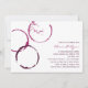 Rustic modern invitation design features chic burgundy red wine glass ring stains.