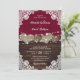 Rustic Burgundy Wood Burlap Lace Wedding Invitation
