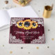 Complement your burgundy rustic wedding party with this sunflower wedding guest book featuring sunflowers on a rustic wood and lace background. Matching items available.