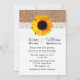 Stylish rustic wedding invitation done in white, with graphics of a burlap, lace and satin stitching header and a pretty sunflower, in the middle. Personalise the black text for your wedding. Matching products are available.
