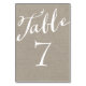 Simple and chic rustic table number cards with a calligraphy style script font on a printed faux burlap texture background. Customise each card with your table numbers to suit any size wedding or party. Click Customise It to change the number font and colour or change the background colour to create your own unique one of a kind design.