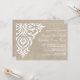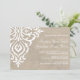 This rustic wedding invitation features a distressed burlap look background with a faded white damask design. The perfect blend of rustic materials with the elegance of damask detailing. Perfect for your barn wedding, outdoor wedding, country wedding, rustic wedding, vintage wedding, or elegant wedding.