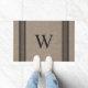 Rustic Burlap Farmhouse Ticking Stripe Monogram Doormat