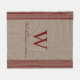 Rustic Burlap Farmhouse Ticking Stripe Monogram Fleece Blanket