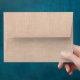 Elegant envelope featuring beautiful flowers and lace on a rustic burlap background.