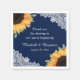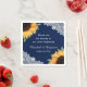 Decorate your navy blue rustic wedding party with these elegant botanical wedding napkins featuring sunflowers and greenery on a navy blue burlap and lace background adorned with string lights.