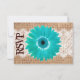 Rustic Burlap Lace Teal Daisy Wedding RSVP Cards