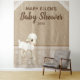 This burlap and lace brown/beige gender neutral baby shower tapestry backdrop is perfect for your little lamb themed baby shower. The backdrop features a hand painted cute little lamb inspired by vintage illustrations. Use this backdrop at your baby shower party and take pictures in front of it. It is customisable and allows you to add your own text!
