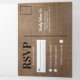 3 in 1 rustic country wedding trifold invitation featuring a rustic brown burlap effect background, elegant mason jar string twinkle lights, the sayings "EAT, DRINK AND BE MARRIED" and "LOVE TRULY, DRINK DEEPLY AND DANCE BADLY". You are able to add a personalised photo of you and your partner, the wedding details such as accomodation information, webiste details, the invitation, and an rsvp postcard for your guests to cut off and send back.