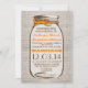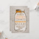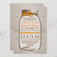 Pretty, rustic country wedding invitation with a hand drawn mason jar and orange twine bow around it. The burlap background is a printed design on the paper - not actual burlap fabric. Please contact me if you need help with customisation or have a custom colour request.