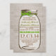 Pretty, rustic country wedding invitation with a hand drawn mason jar and a green twine bow around it. The burlap background is a printed design on the paper - not actual burlap fabric. Please contact me if you need help with customisation or have a custom colour request.