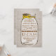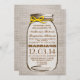Pretty, rustic country wedding invitation with a hand drawn mason jar and yellow twine bow around it. The burlap background is a printed design on the paper - not actual burlap fabric. Please contact me if you need help with customisation or have a custom colour request.