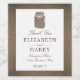 The design features a rustic burlap mason jar with a rustic burlap border.