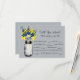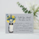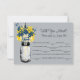 Matching LIB RSVP card perfect for a country style wedding or maybe you just love Mason Jars! Mason Jar hanging on a hook filled with country wildflowers. A Light Silver Grey background and hanging Mason Jar and wildflowers in colours of Navy and Yellows. If you have any questions on this design or want a colour change please email me paula@labellarue.com Also check for the RSVP, RECEPTION and GUEST SEATING Cards to match!
