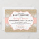 Rustic Burlap Modern Lace Coral Girl Baby Shower Invitation