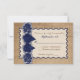 This modern and trendy rustic brown FAUX burlap look wedding reply card is shown here on basic paper. It has a PRINTED navy blue lace band with a PRINTED navy blue bow on it, and an ivory and navy blue scroll edged template text area on it that matches the wedding invitation shown below. It is easily customised with your own information. ***PLEASE be careful if you change the paper type. ***PLEASE NOTE that if you change the fonts, or the size of the font, some of your text may get cut-off. Everything will print as it appears on your monitor. I will NOT see your order and Zazzle will NOT edit or correct anything, so please be sure you have no typos or mis-aligned text. If you need assistance, please email me BEFORE you place your order. If you need this formatted for a different event, or if there are any other matching items you need to make your event extra special, please email your request to niteowlstudio@gmail.com. Existing matching items are shown below.