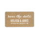 Beige Rustic Burlap Script Wedding Save the Date Address Label. Design by Elke Clarke© for MonogramGallery printed by Zazzle. Send out your save the date cards to your friends and family using this beautifully, simple label with the words "save the date" written in a white hand writing typography script text overlay. Printed photo effect of beige burlap background. Other colours available.