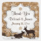 This festive 1.5" square shaped brown FAUX burlap with white snow flakes wedding favour sticker and/or envelope seal has layers and layers of snowflakes with silhouettes of two deer (a doe and buck) sitting and standing on snow covered hills matches the wedding invitation shown below. If you need any other matching items, please email niteowlstudio@gmail.com.
