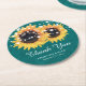 Rustic Burlap Teal Sunflower Wedding Round Paper Coaster