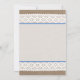 The design features a lovely rustic burlap effect background with a romantic vintage white lace and blue ribbon effect trim.