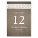 Rustic Burlap & Vintage White Lace Wedding Table Number
