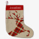 Rustic Burlap with Custom Name Red Plaid Reindeer Christmas Stocking