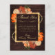 Gorgeous Rustic Watercolor burnt orange fall autumnal flowers floral design on a brown wood background with gold foil border