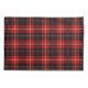 Rustic cabin in the woods design with a red, black, and cream plaid. Thick red stripe with black silhouettes of trees, moose, and moose print tracks. The red is changeable! Swap out the red for any colour you prefer.