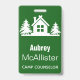 Make your employees happy campers with these minimalist style badges! Modern green and white trees with cabin pattern custom name badge. Great for camp counsellors, and outdoors activity club, or chaperones for outdoor outings.
