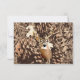Rustic Country Camo Hunting Antlers Wedding RSVP Response Cards with a brown camouflage background and mounted deer antlers design in the corner. The back of the reply card is also in full colour with the camouflage design and the mounted deer antlers. The camo design has pine cones, pine needles, and leaves in hues of brown colour. These reply cards are designed to match these camo wedding invitations: