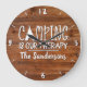 This rustic style clock with a wood background design features a tent and fun design with "Camping is our therapy" and below that you can customize the clock with your family name. A great edition for your camping outdoors or RV adventure.